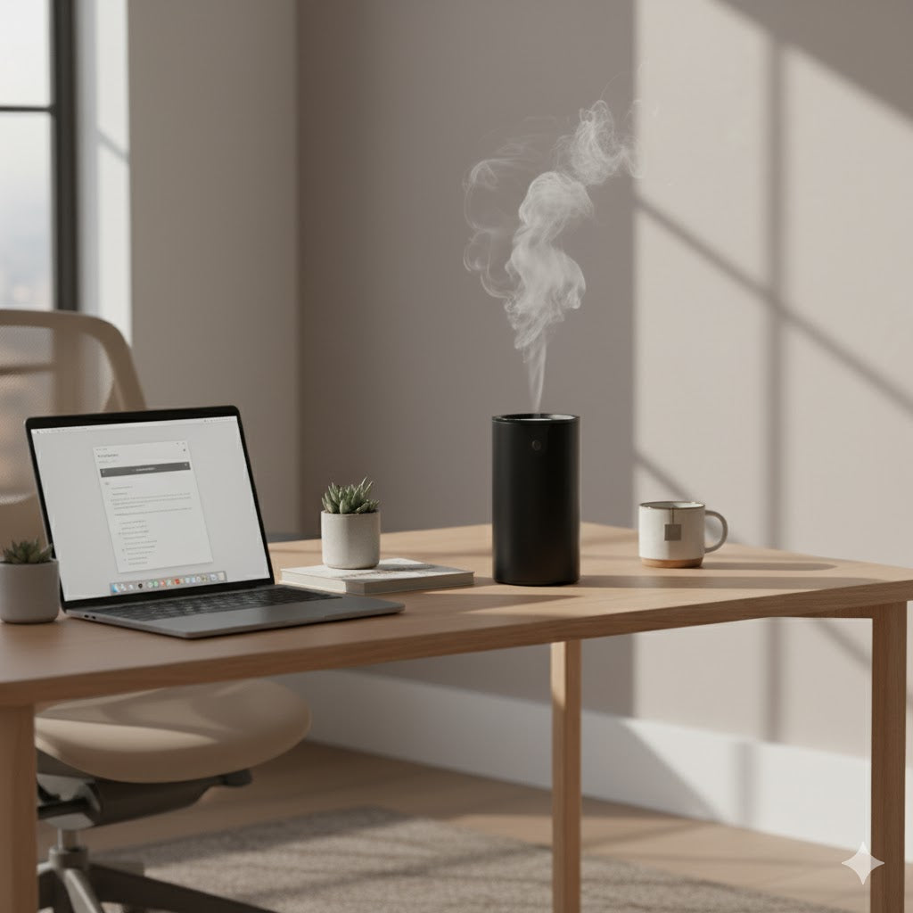 YOU control the intensity. Start with 6 drops for subtle diffusion, or go up to 10 drops for a more present aroma. The mist disperses gently — it fills a room without overpowering. Most users describe it as "noticeable but not intrusive."